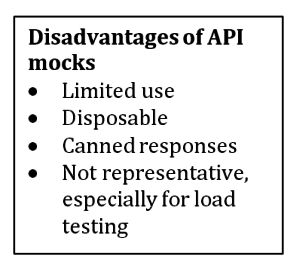 The least useful for load testing is API mocking. These are basically temporary placeholders used during development of an API. Developers use these for early unit testing. But they also provide these “dummy” versions to other teams that need to call the unfinished API from within their own code.