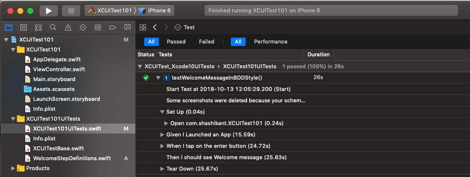 Now we can make our test class XCUITest101UITests class to adopt the Welcome