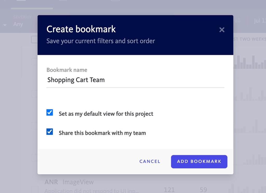 As with all filtered views of your project’s errors, this refined “for review” filter can be saved as a shared bookmark. By doing so, the list of errors to triage will always be a single click away for you and your entire team. You can even recommend that each team member set this shared bookmark as their default inbox view.