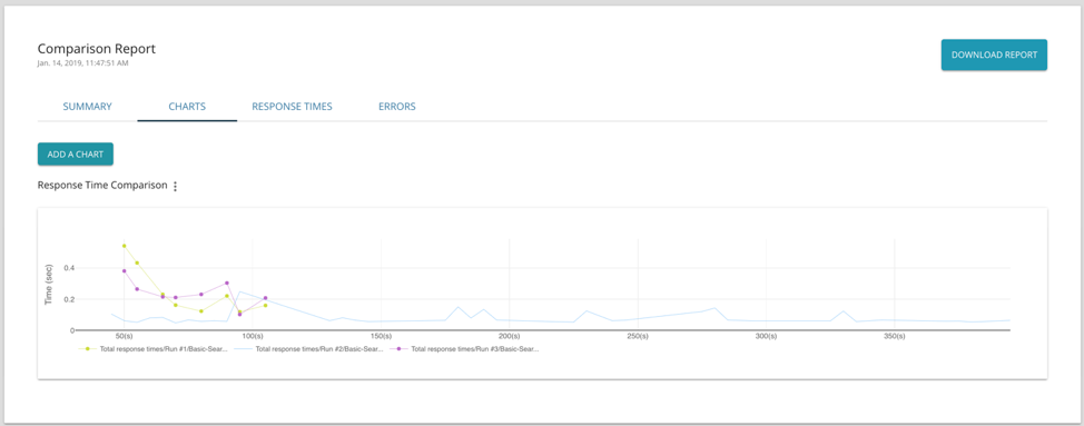 This is especially useful if your team is constantly releasing new features and updates to your web application. Analyzing if the response time and the error counts end users experience has improved or degraded over time with new features, enhancements and fixes is just as important as one-off load test analysis.