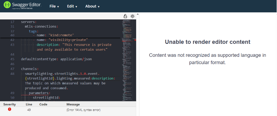 In the Swagger ecosystem, the smallest building block of API governance is good old-fashioned linting. A linter is a formatter with syntax rules that scans your code (in this case, your API designs which are usually JSON or YAML files) and notifies you if you’ve made any mistakes in how the file is written or structured. For example, Swagger Editor has a built-in linter that will tell you if your API definition does not follow all the rules of the OpenAPI Specification.