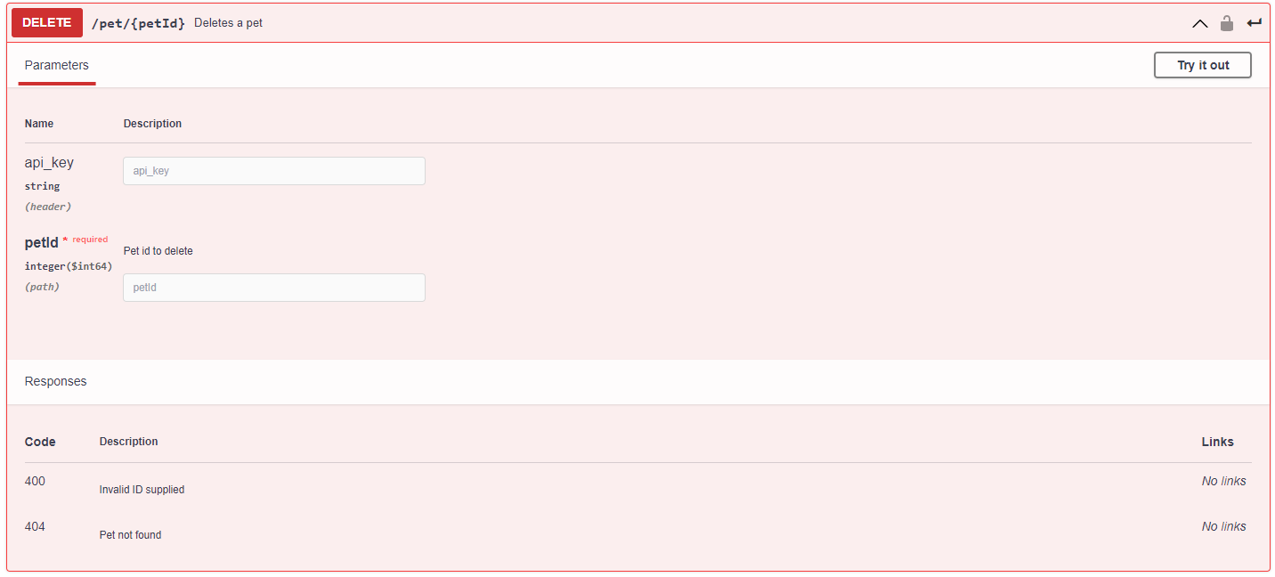 This is an oversimplified version of a simple REST transaction. APIs can be more complex. Imagine trying to put together an integration to this API for a grooming pet website. How do you delete current pet entries? The delete method is simple enough, and we already have the resource from our previous interactions /v2/pet/{petId}, and it may require the same JSON payload, but we can’t be entirely sure. This is where documentation comes into play.