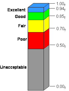 Apdex values fall between 0 and 1 where, 0 means that no users are satisfied, and 1 indicates that all user samples were in the satisfied zone. Clearly, a higher number is better. But not all applications will achieve or need to receive a perfect value of 1. The alliance has developed a simple rating scale that provides a quick assessment of an application. The ratings, along with Apdex values that define them are shown below.