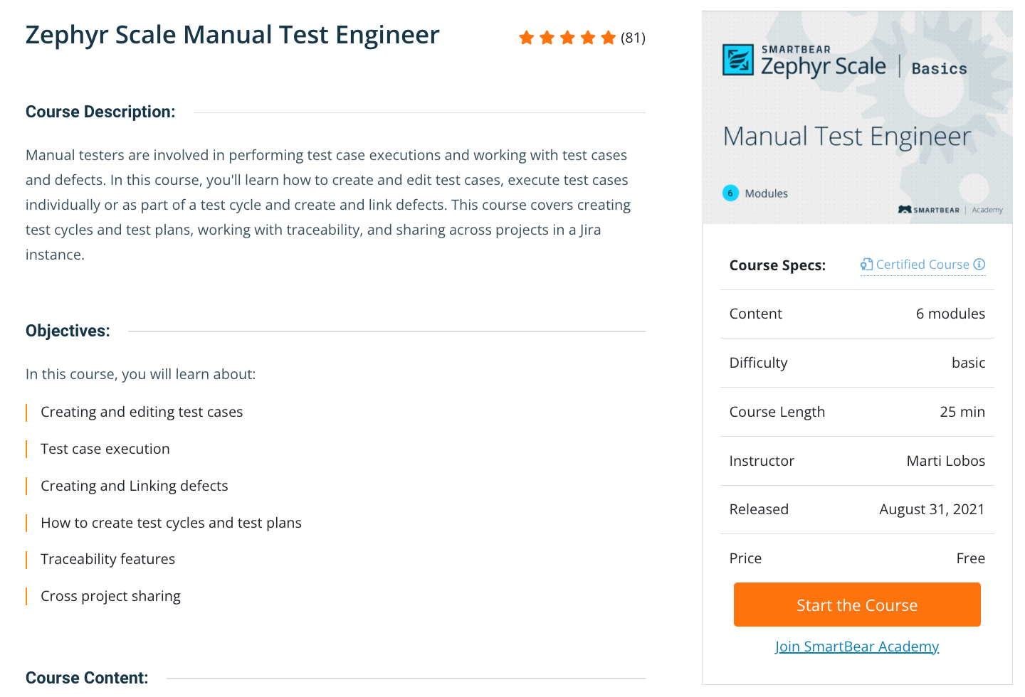 Manual Test Engineer course for Zephyr Scale
