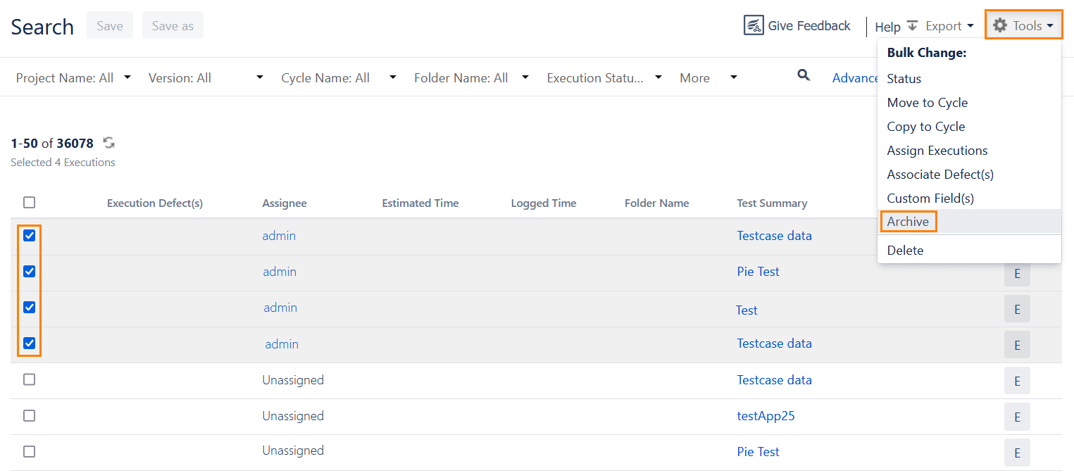 Archiving test executions in Zephyr Squad
