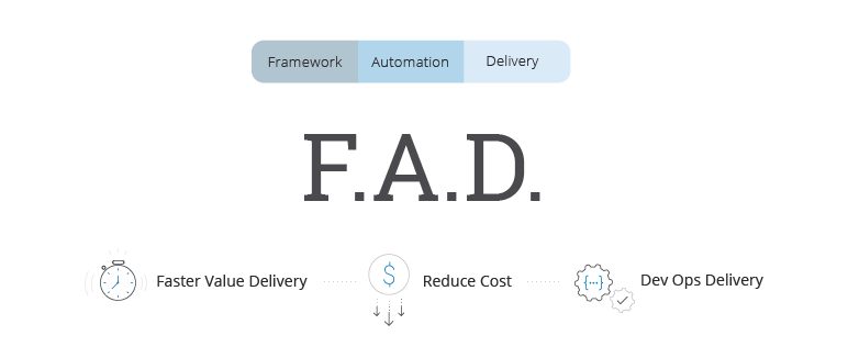 F.A.D is an acronym for Framework, Automation, and Delivery. Using the F.A.D methodology, a comprehensive and reusable framework can be built. This framework can be organized and customized easily to meet the changing business needs of the organization.