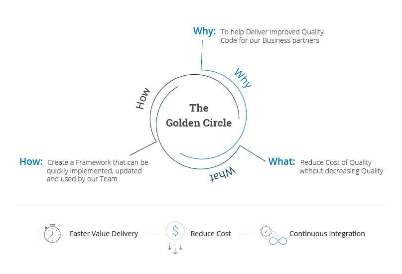 The first step in the golden circle is to understand, ‘What needs to be done?’ In our case, we need to reduce costs without compromising quality. It is the process of identification of the correct framework that corresponds to the automation tools used in the organization.