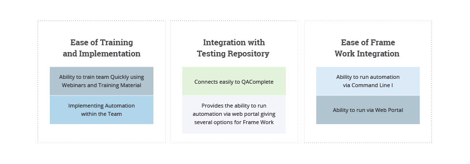- It is made of reusable pieces to build automation of new requirements, quickly.